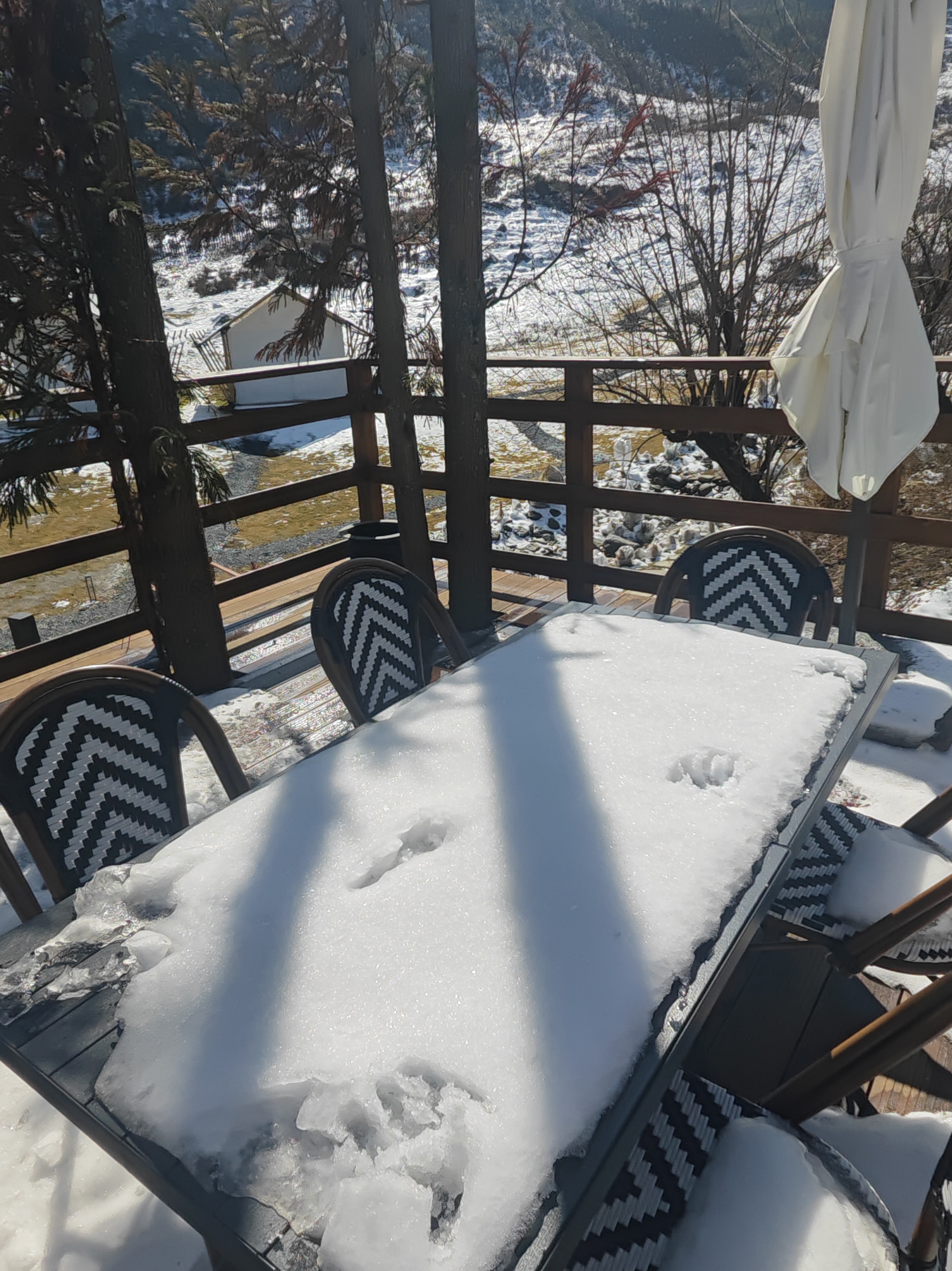 初一和家人去了附近的山上看雪