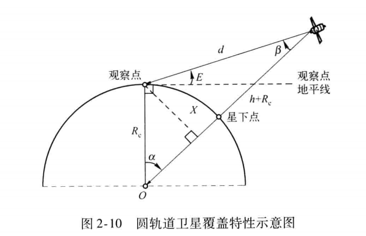 由此可以推导出仰角与地心角的关系 (从O点作观察点-卫星连线的垂线):
