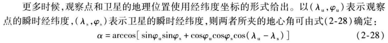 如果已知的是卫星的经纬度,也可以表示出地心角: